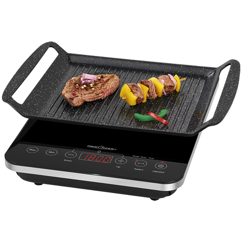 • Високоякісна, екологічно чиста склокерамічна поверхня • Стійка до подряпин гладка зона приготування їжі (дуже легко чиститься) • Автоматичне виявлення посуду - автоматичне вимикання у разі відсутності індукційної посуду • ІНДУКЦІЙНА ПЛИТА: 2 в 1 - індукційний настільний гриль і індукційна варильна поверхня • Нагрівання займає всього кілька секунд завдяки індукційній технології • економія часу в порівнянні зі звичайними плитами для приготування їжі, відсутність фази попереднього нагріву, економія енергії • 10 рівнів потужності і 10 рівнів температури зі світлодіодною індикацією (60 ° C - 240 ° C) • Електронна сенсорна панель управління з сенсорним датчиком і дисплеєм для комфортної роботи • 3 світлодіодних індикатора • 180 хв. таймер з автоматичним відключенням і сигналом закінчення • Індикація зворотного відліку на світлодіодному дисплеї • Автоматичне відключення через 120 хвилин без роботи • Автоматичне відключення після видалення посуду • Блокування від дітей • Висока стабільність завдяки нековзним ніжкам • ГРИЛЬ: Стійка до подряпин алюмінієва решітка з керамічним покриттям • З дуже глибокими канавками для міцності решітки та оптимального зливу жиру - утримує і розподіляє тепло оптимально • Легко миється • Оптимальний для смаження, варіння і гасіння риби, м'яса і овочів • Площа гриля: прибл. 25 x 23 см • Матеріал: алюміній зі сталевими вставками для зони приготування їжі з 200 мм діаметром • Підходить для індукції •