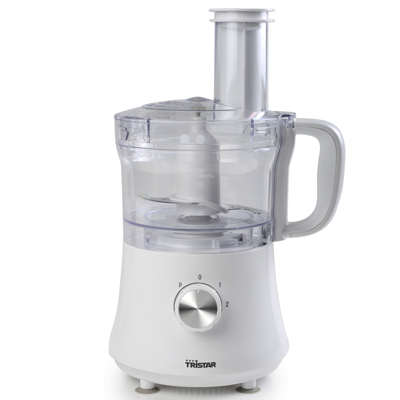 • Стильний кухонний комбайн з різними швидкісними режимами і потужним мотором для різання, терки і подрібнення м'яких і твердих овочів. У комплекті ніж з нержавіючої сталі і насадка для подрібнення