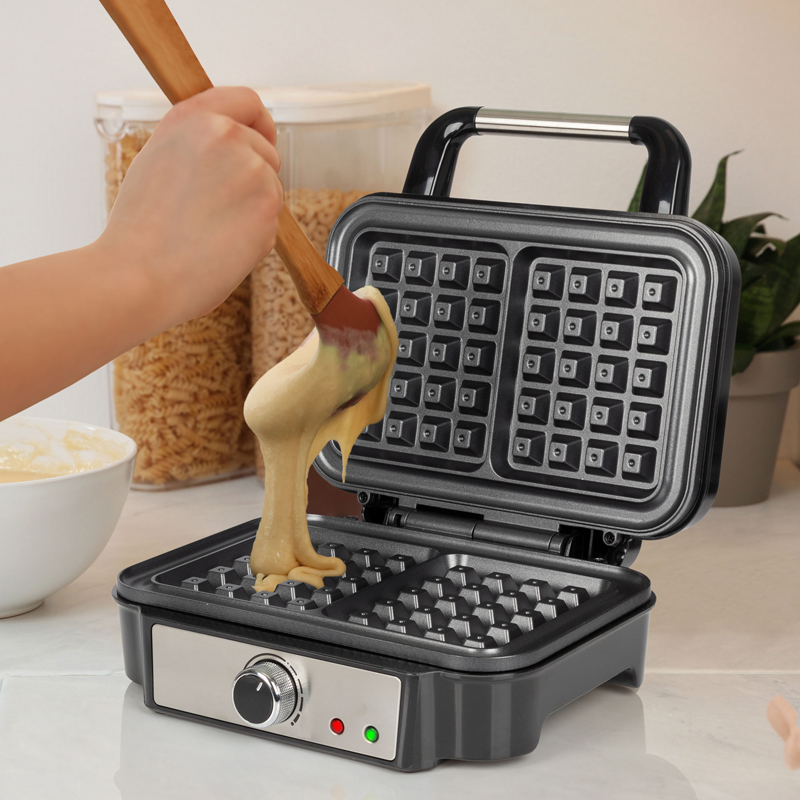 • Очень легкая очистка: Поверхность для выпечки с антипригарным покрытием, Закрытый канал для защиты от переполнения улавливает излишки теста
