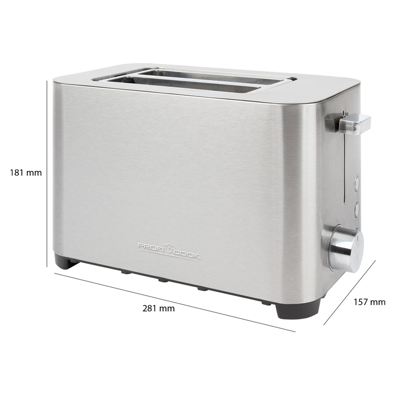 • Потужність, Вт: 850 • Тостер на 2 скибочки • Корпус із нержавіючої сталі • "Широкий слот" - дуже широкі прорізи для тостів (40 мм) • Підставка для булочок (знімна) • Функція розморожування/розігріву/швидкої зупинки (з підсвічуванням) • Плавно регульований рівень підсмажування • Вкл. індикатор рівня підсмажування • Функція центрування для рівномірного підрум'янення • Автоматичне та ручне відключення • Лоток для крихт • Зберігання шнура • Надійна підставка завдяки гумовим ніжкам •