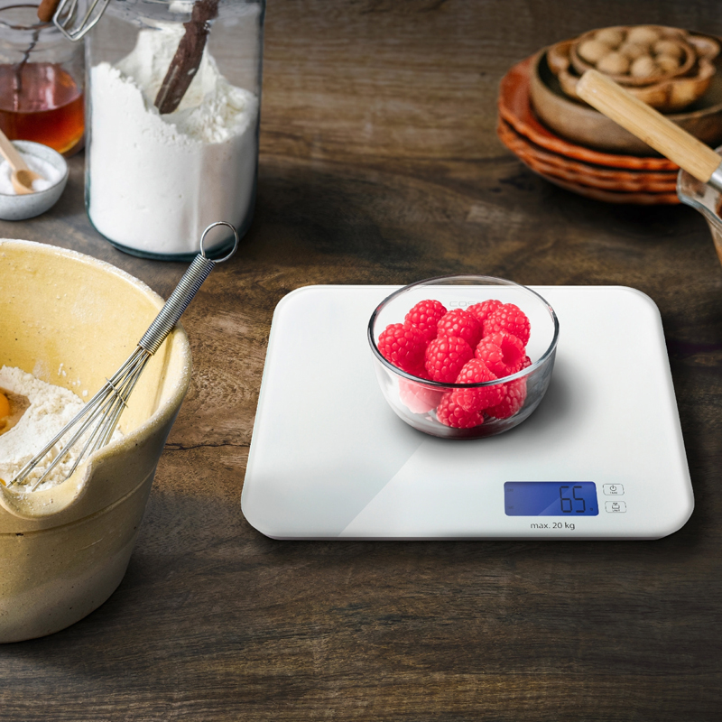 • Подходят для особо тяжелых сосудов - весы с максимальной массой до 20 кг • Большая стеклянная поверхность для взвешивания • Точный датчик взвешивания с шагом 5 г • Выбираемые единицы измерения - г / кг / унции / фунты / мл / жидкие унции • Интуитивное сенсорное управление • Практичная функция тарирования • Большой, хорошо читаемый дисплей • Очень плоский дизайн •